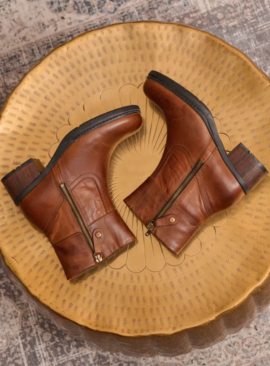 Stoer en vrouwelijk; dat is deze enkelhoge boot van gewaxt leer. De hielpartij en de stevige hak van de schoen houden je…