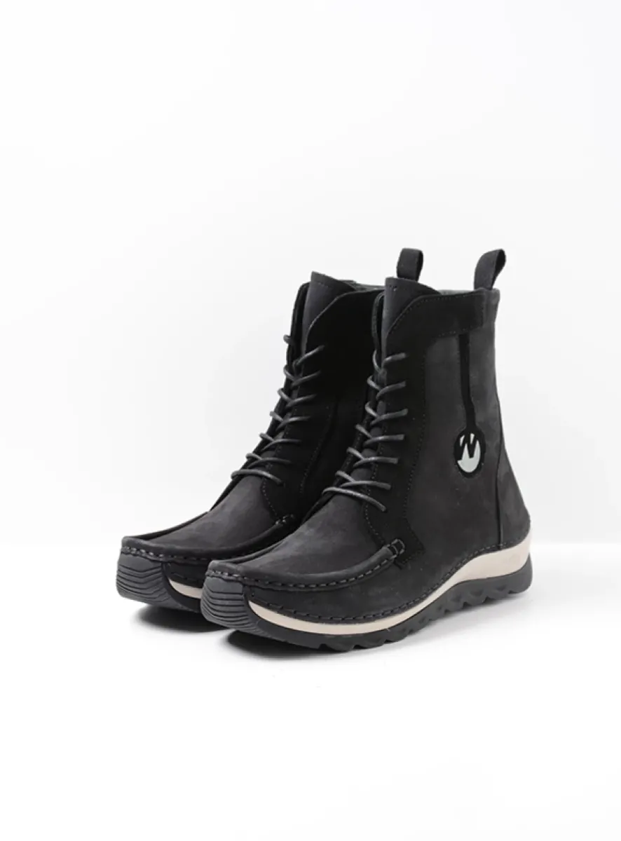 Hoge Veterschoenen|Veterlaarzen<Wolky Ocean – zwart nubuck zwartnubuck