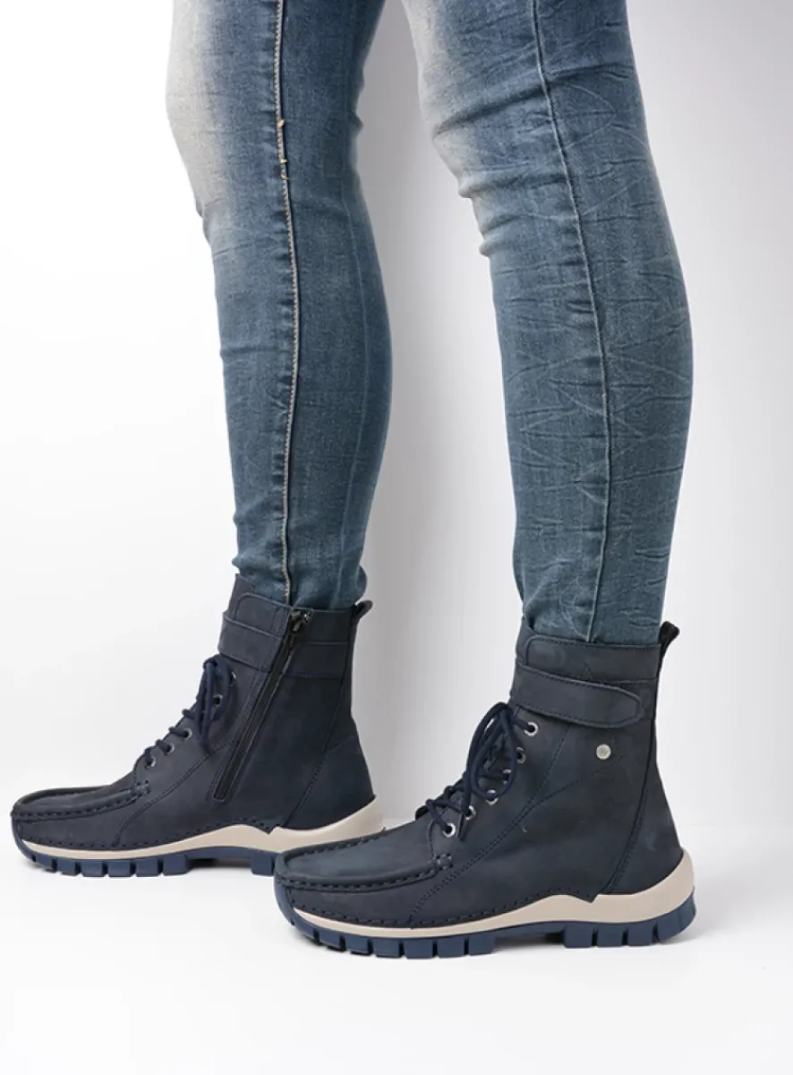 Hoge Veterschoenen|Veterlaarzen<Wolky Reach – blauw nubuck blauwnubuck