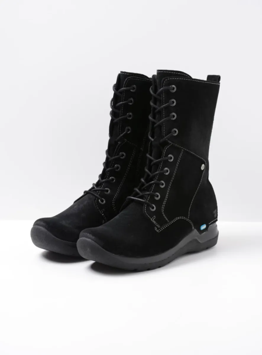Hoge Veterschoenen|Veterlaarzen<Wolky Zigzag – zwart suede zwartsuede