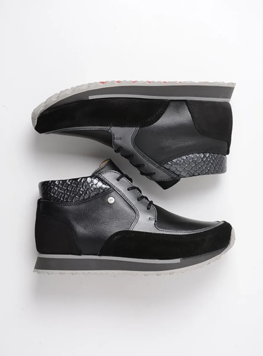 Hoge Veterschoenen|Wandelschoenen<Wolky e-Boot – zwart combi leer zwartcombileer