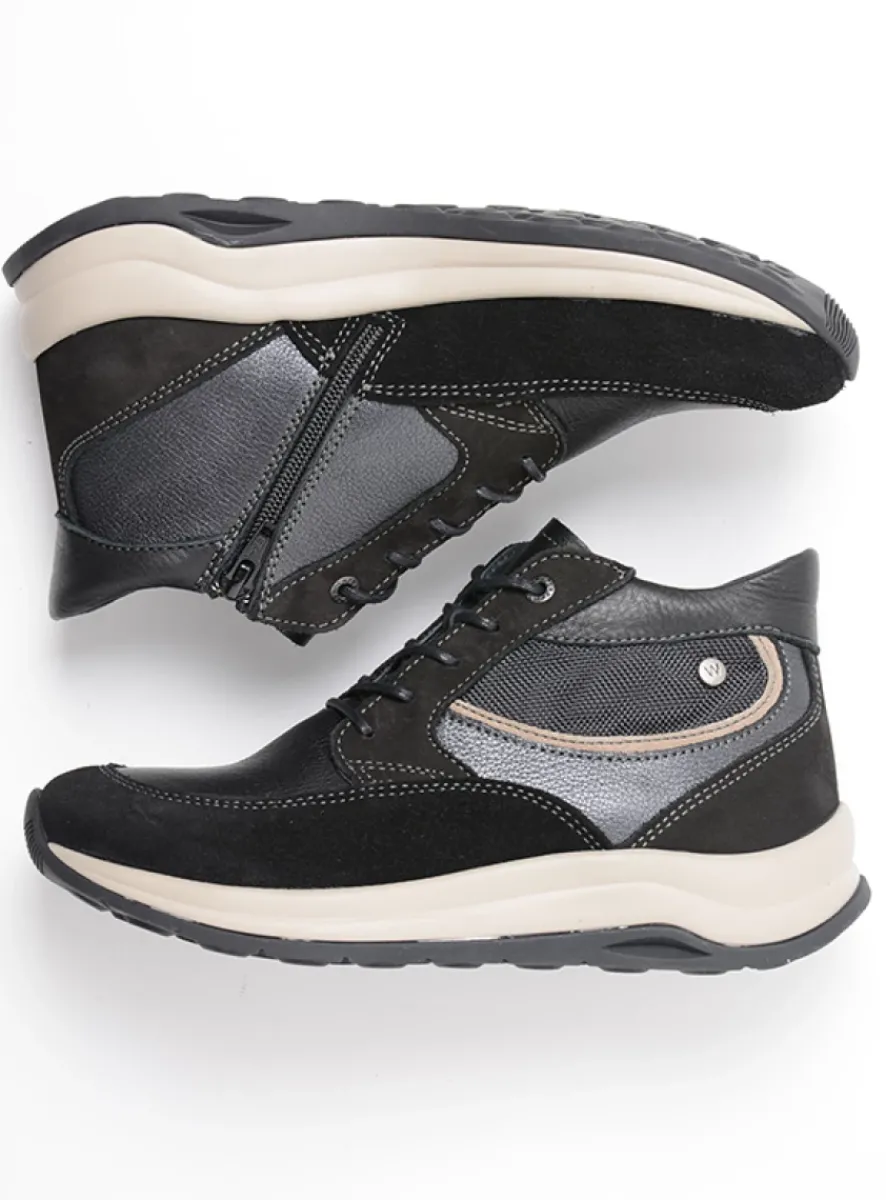 Hoge Veterschoenen|Wandelschoenen<Wolky Scone – zwart combi leer zwartcombileer