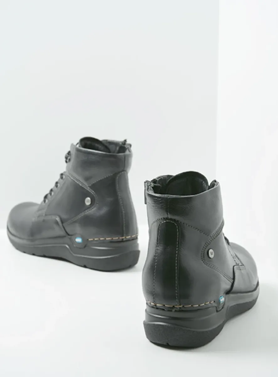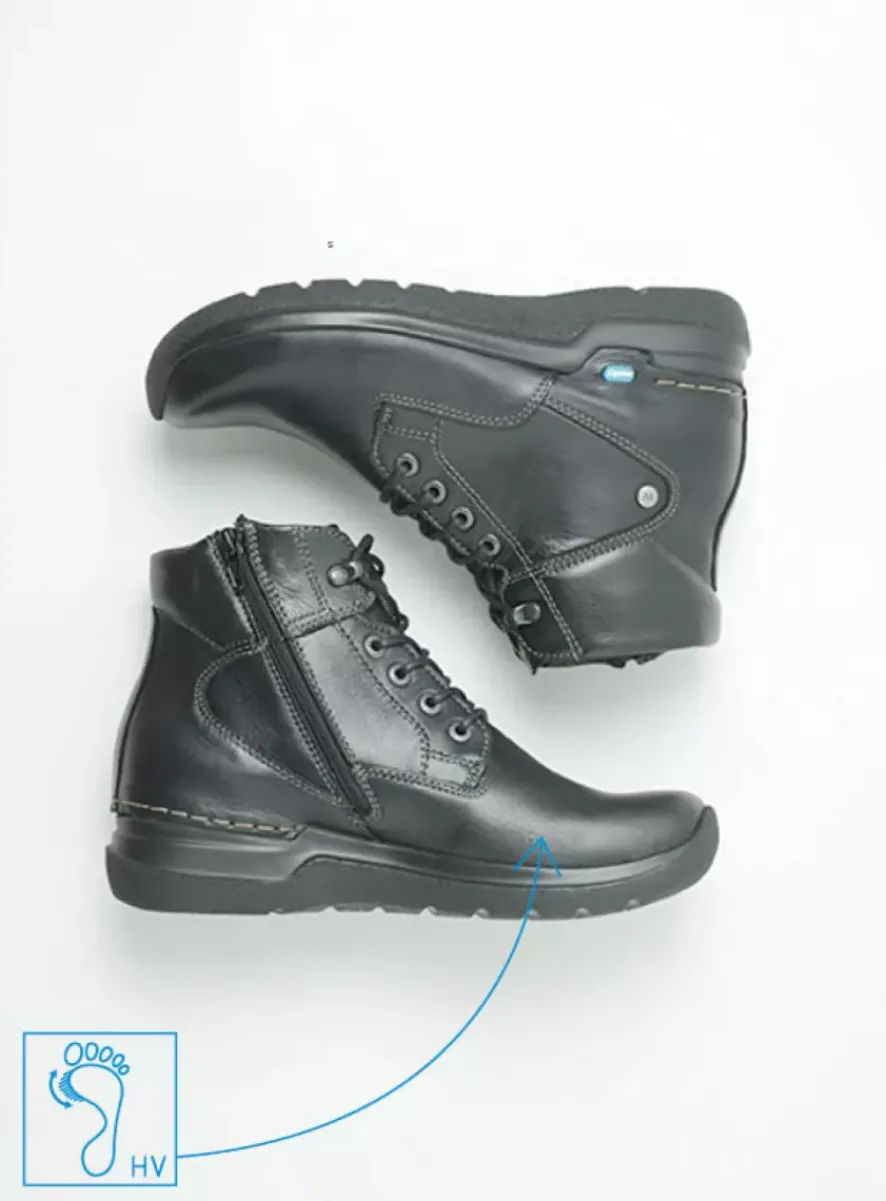Hoge Veterschoenen|Wandelschoenen<Wolky Whynot HV – zwart leer zwartleer