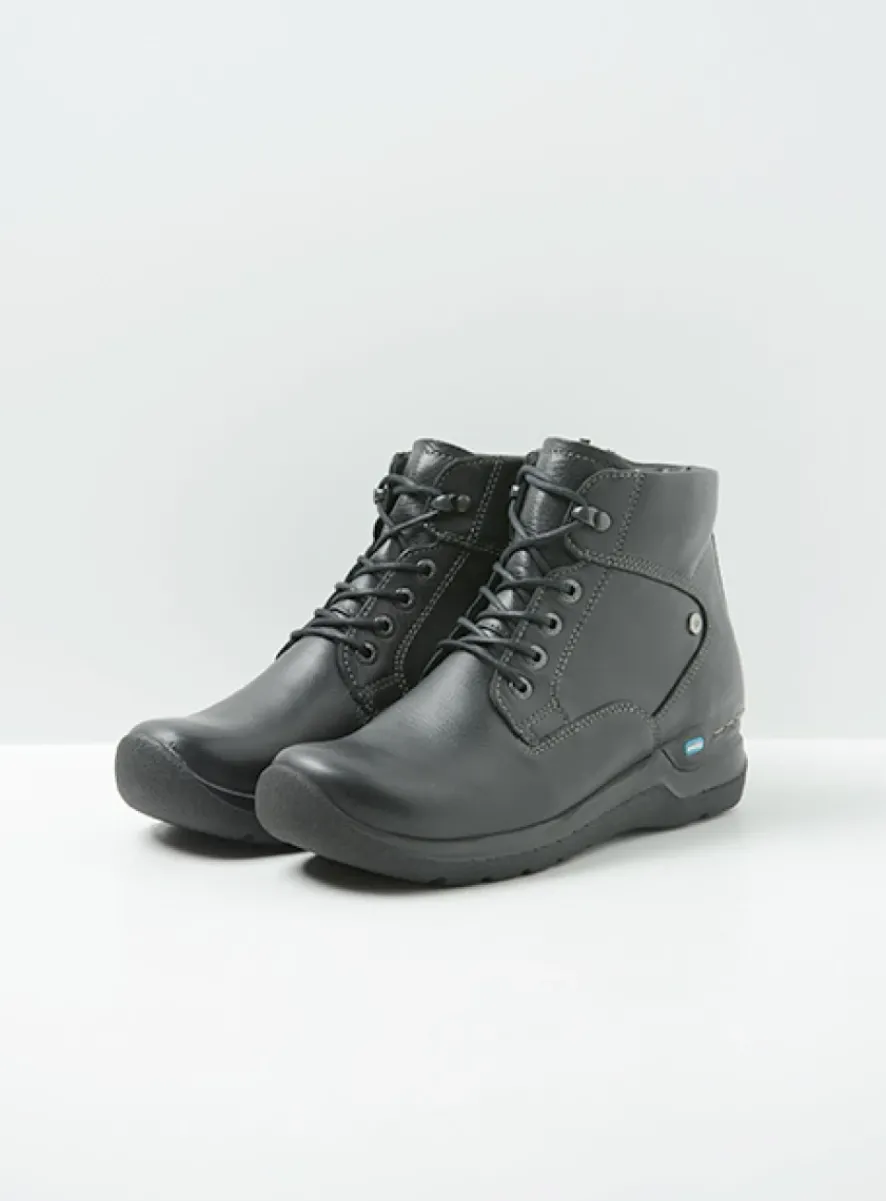 Hoge Veterschoenen|Wandelschoenen<Wolky Whynot – zwart leer zwartleer