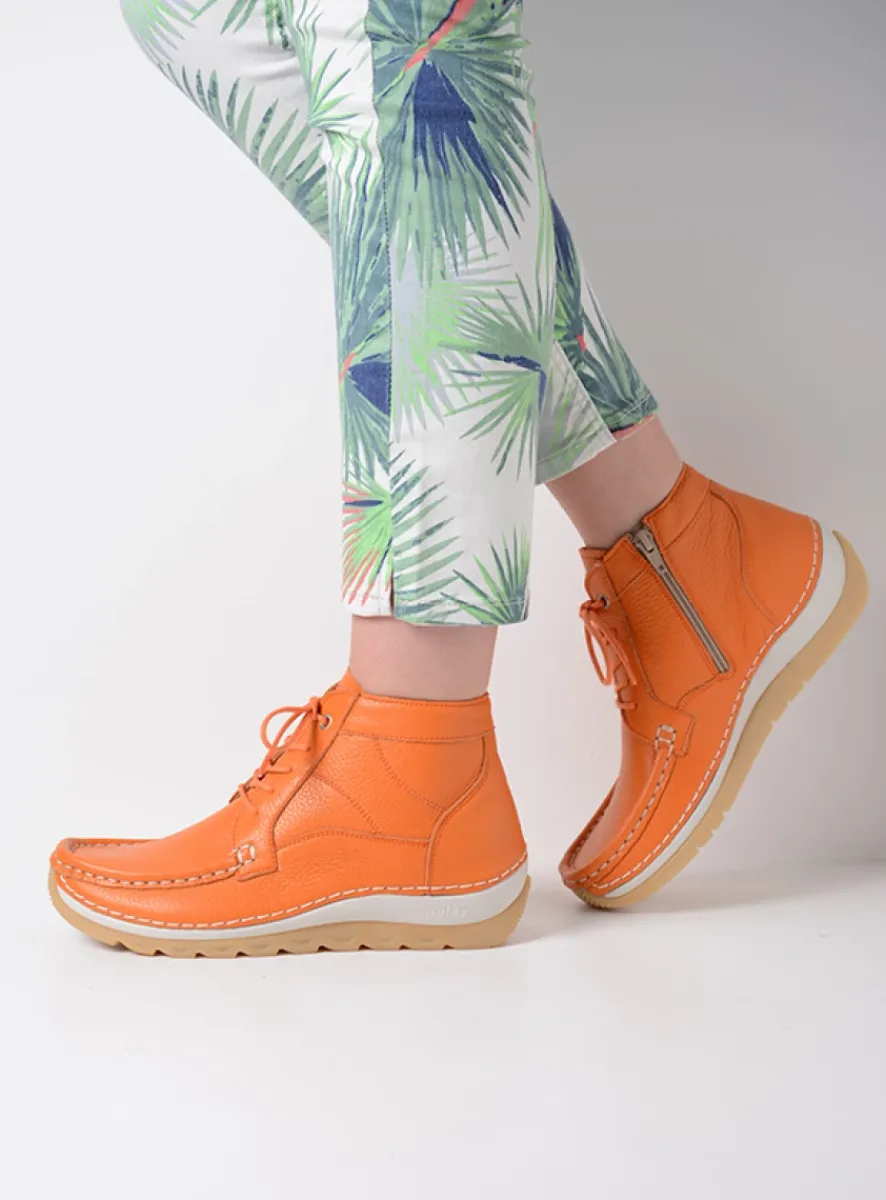 Hoge Veterschoenen<Wolky Salado – oranje leer oranjeleer