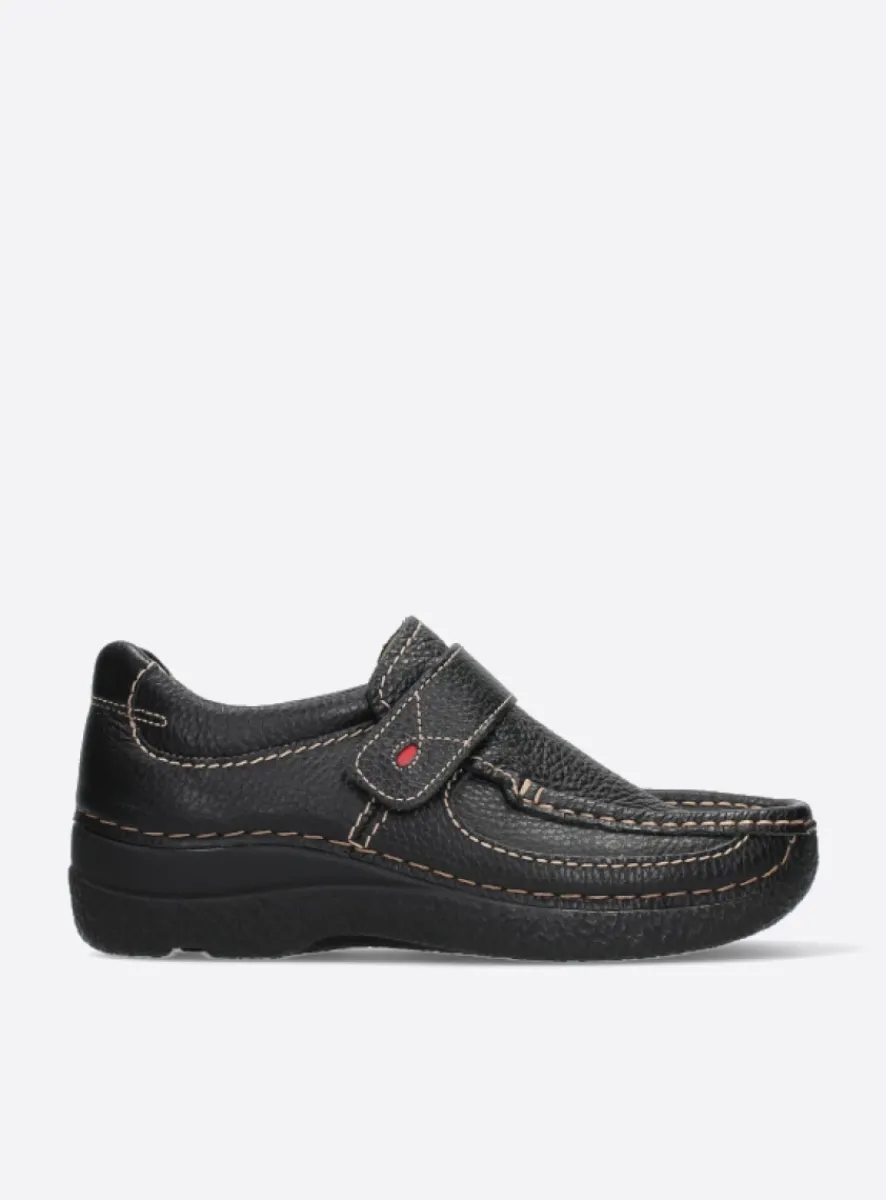 Instappers|Herfst/Winter<Wolky Roll Strap – zwart leer zwartleer