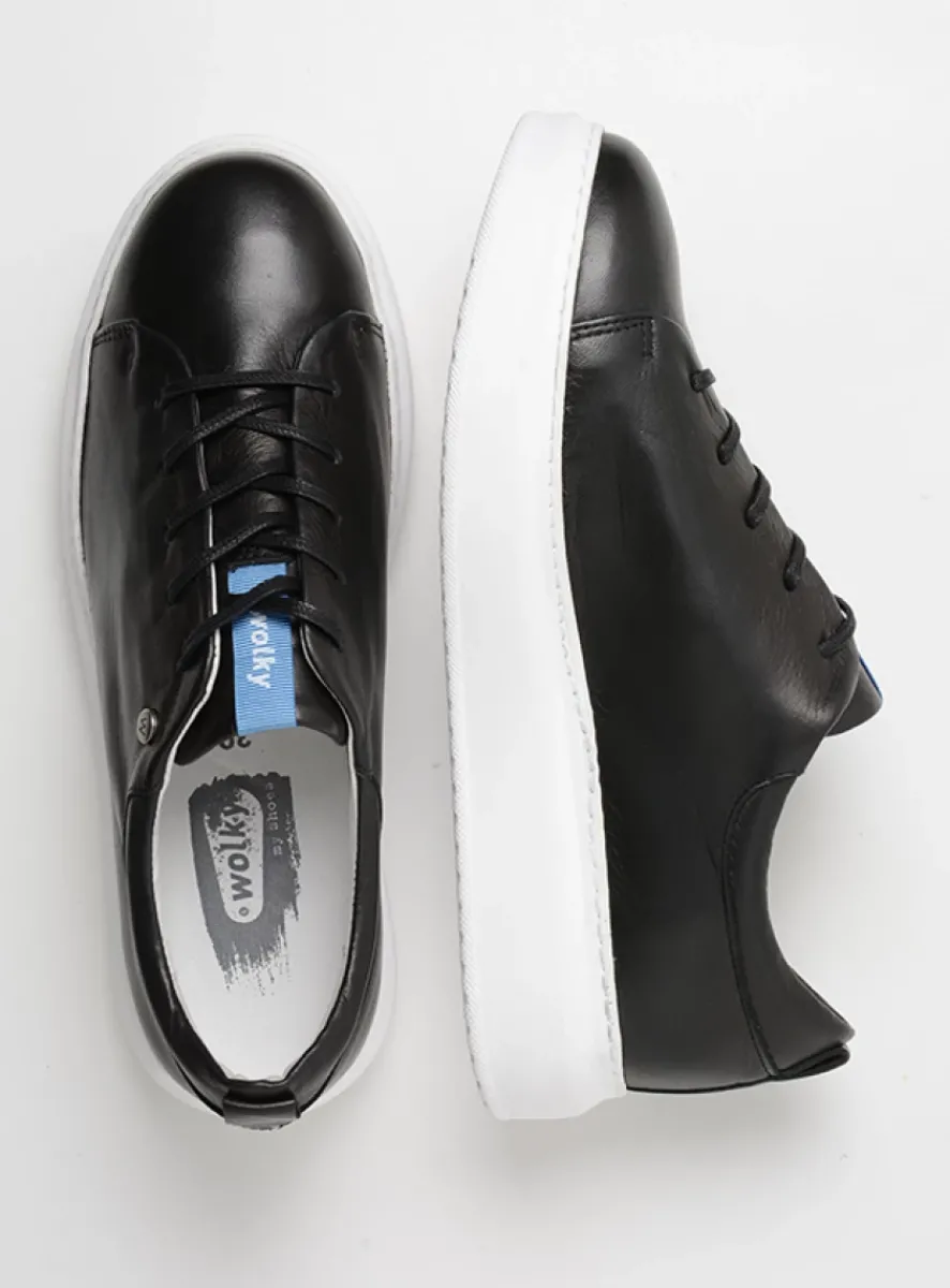 Lage Veterschoenen|Sneakers<Wolky Move it – zwart leer zwartleer