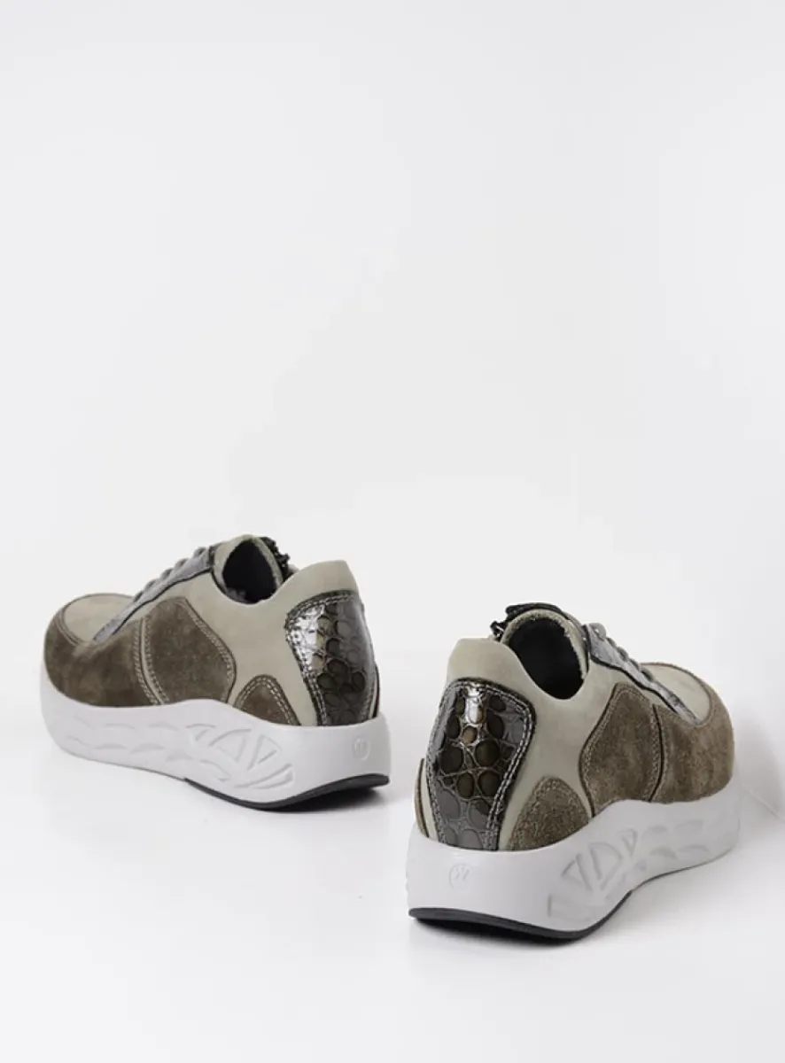 Lage Veterschoenen|Wandelschoenen<Wolky Bounce – grijsgroen combi leer grijsgroencombileer