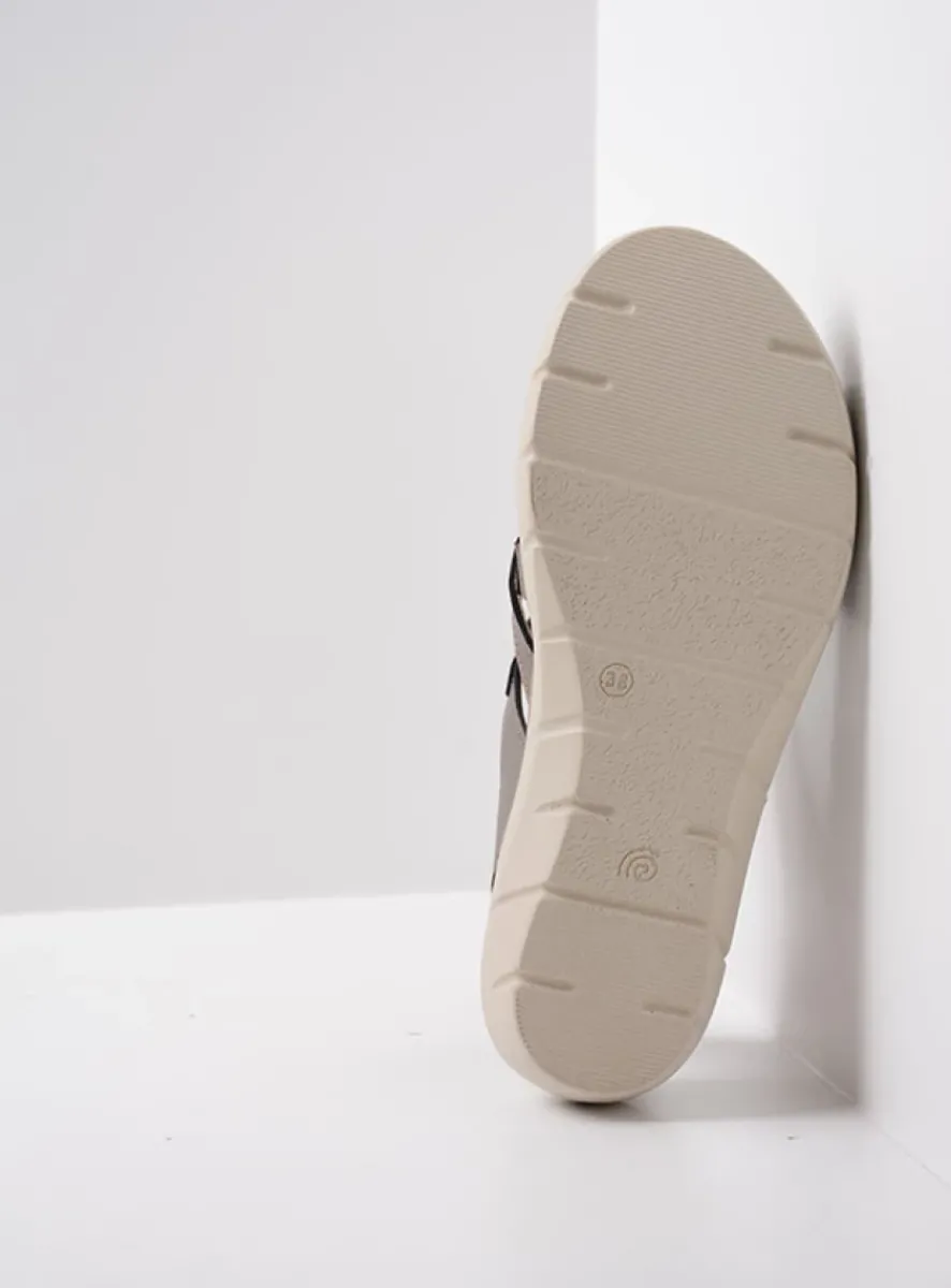 De diagonale band over de wreef geeft de sandaal een chique uitstraling. Neem daarbij de glimmende structuur van het leer in ogenschouw en je weet: de Ikaria is een echte eyecatcher! De sandaal is op meerdere plekken goed af te stellen om de voet door de toepassing van klittenband. Hierdoor stel je de sandalen perfect af op je voet. Het uitneembare voetbed is afgewerkt met een suède dekje dat heerlijk zacht aanvoelt. De stevige zool is gemaakt van PU – dit is superlicht én ondersteunt je voeten de hele dag bij het lopen. Ben je op zoek naar een sandaal die zowel chique als comfortabel is? Dan ben je bij de Ikaria aan het juiste adres!