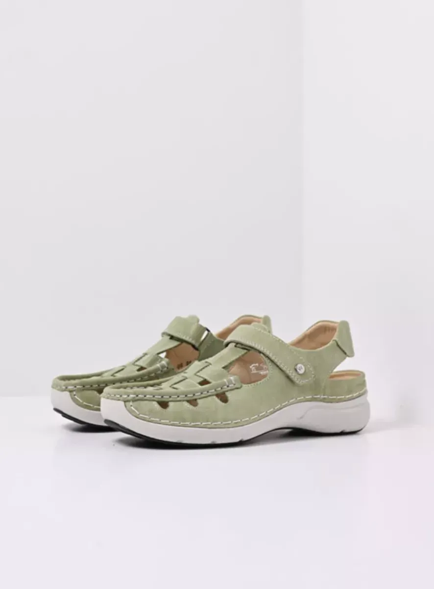 Sandalen<Wolky Rolling Sun – lichtgroen effectleer lichtgroeneffectleer