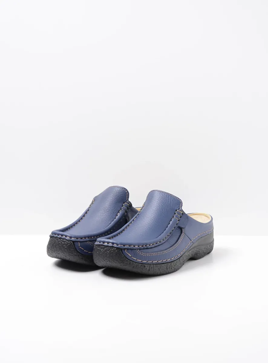 Deze muil uit de Roll Moc-lijn is bij veel Wolky-draagsters favoriet en dat is niet zo gek want je schiet er makkelijk even in. We horen dan ook dat veel dames ’m bij de deur hebben staan, om even de moestuin in te lopen of even wat in de container te gooien. Maar gebruik de Roll Slide ook zeker voor een wandeling. Door de oplopende neus die zo herkenbaar is bij alle Roll Moc-modellen rolt de voet als vanzelf af. De mocassin-maakwijze (handwerk!) zorgt ervoor dat de schoen van binnen lekker zacht aanvoelt. De naden liggen door deze maakwijze namelijk aan de buitenkant en daardoor heb je geen vervelende randen en stiksels aan de binnenkant.Let op: doordat de naden zichtbaar bovenop het voorblad liggen is het verstandig om bij nat weer de schoenen goed in te spuiten met een waterafstotende spray.