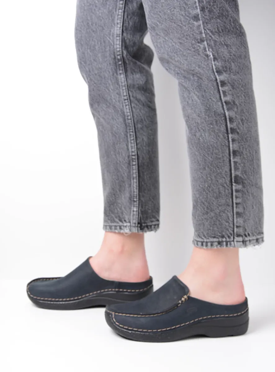 Slippers|Klompen<Wolky Seamy Slide – blauw nubuck blauwnubuck