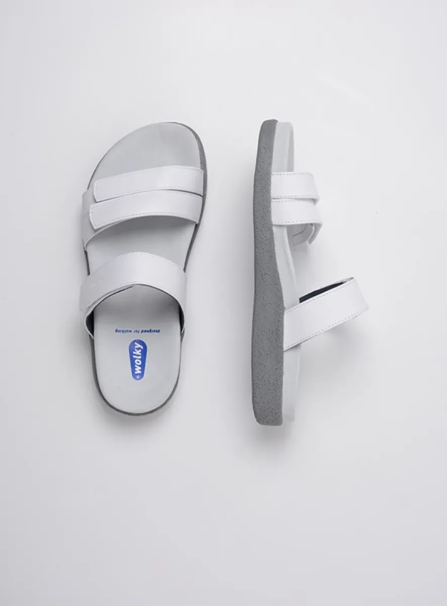 Deze klassieke slipper is niet meer weg te denken uit onze zomercollectie. Door de drie klittenbandsluitingen (twee op d…