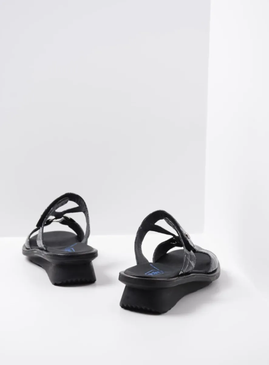 Slippers<Wolky Isa – antraciet croco lakleer antracietcrocolakleer