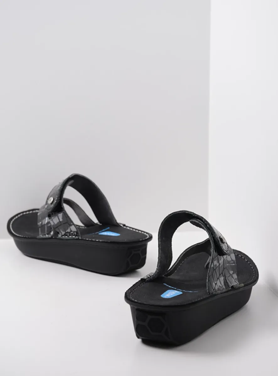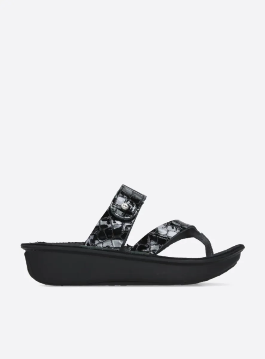 Slippers<Wolky Martinique – antraciet crocolook lakleer antracietcrocolooklakleer