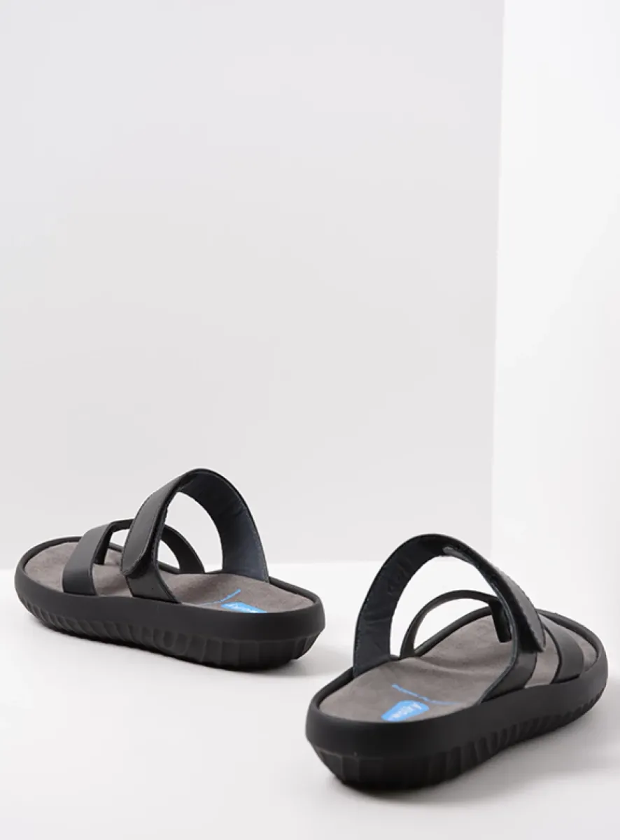 Slippers<Wolky Tahiti – zwart leer zwartleer