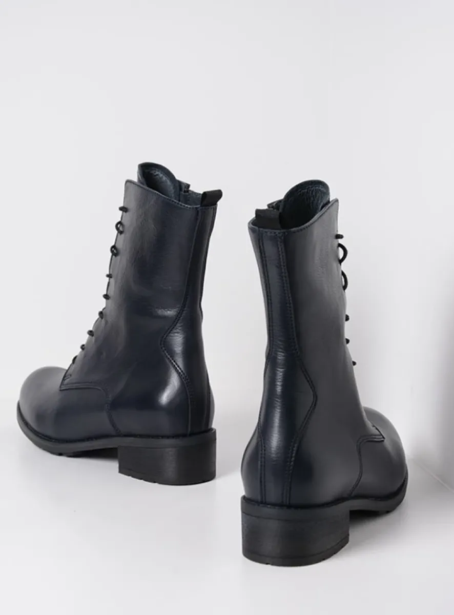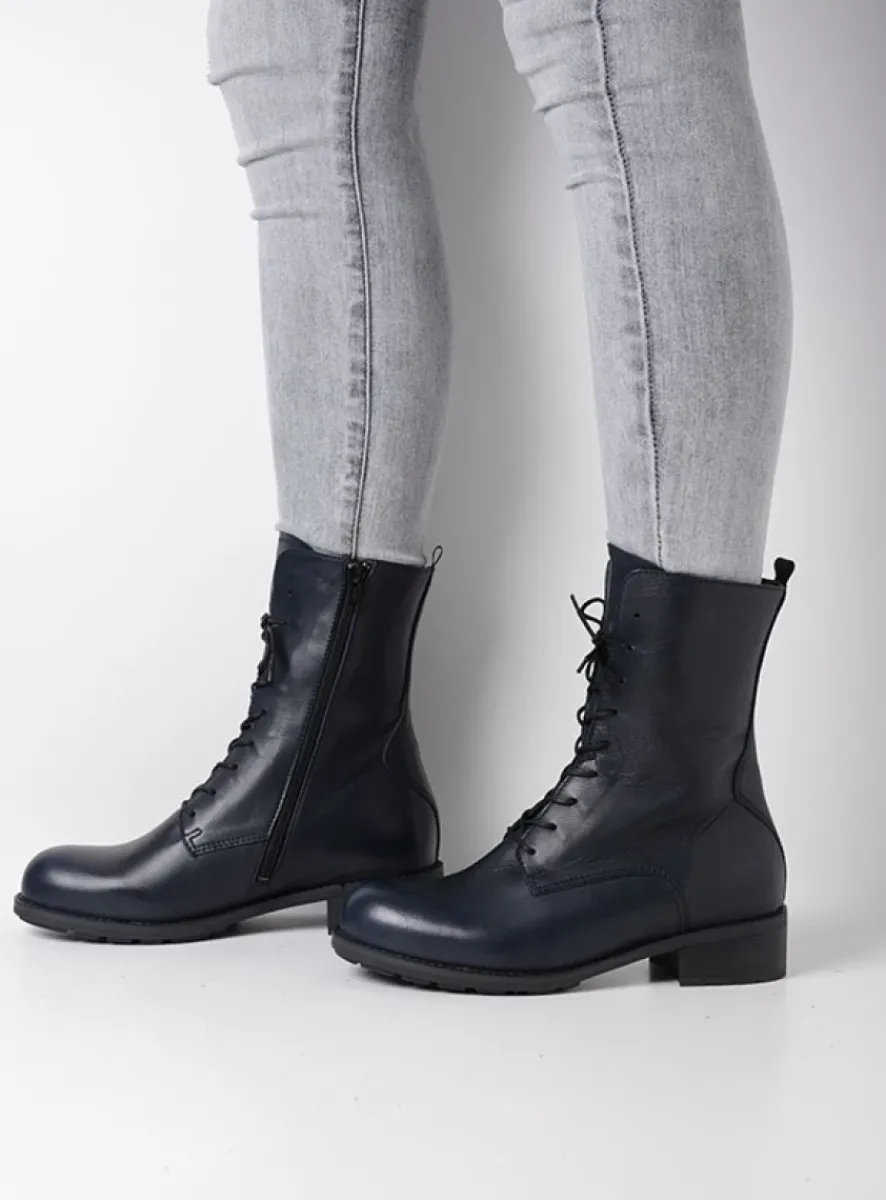 Veterlaarzen|Halfhoge Laarzen<Wolky Emery HV – blauw leer blauwleer