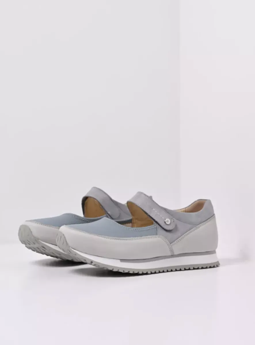 Wandelschoenen|Bandschoenen<Wolky e-Step – blauw combi stretch leer blauwcombistretchleer