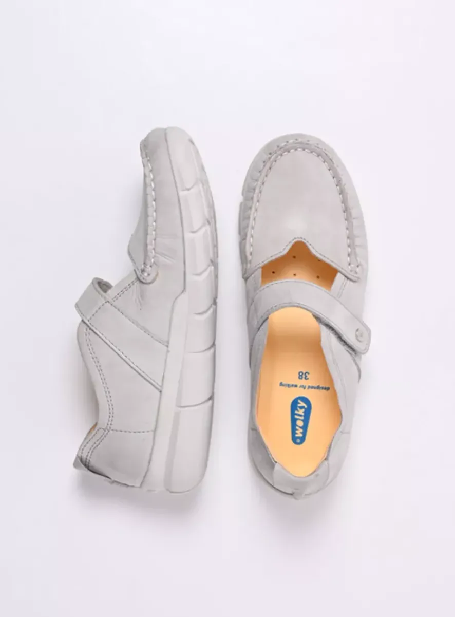 Deze bandschoen is een model uit Wolky’s Moc-lijn. Bijzonder aan de schoen is de oplopende neus. Die geeft de schoen niet alleen een eigenwijs karakter, maar heeft ook een functie. Door deze neus rolt de voet bijna automatisch af, waardoor lopen makkelijk wordt. De Yukon heeft een mocassin-maakwijze, dat houdt in dat de naden aan de buitenkant van de schoen liggen. Zo hebben je voeten geen last van harde randjes en stiksels. Het aan- en uitdoen van deze bandschoen is overigens een fluitje van een cent: je gebruikt simpelweg het klittenband. Ideaal!