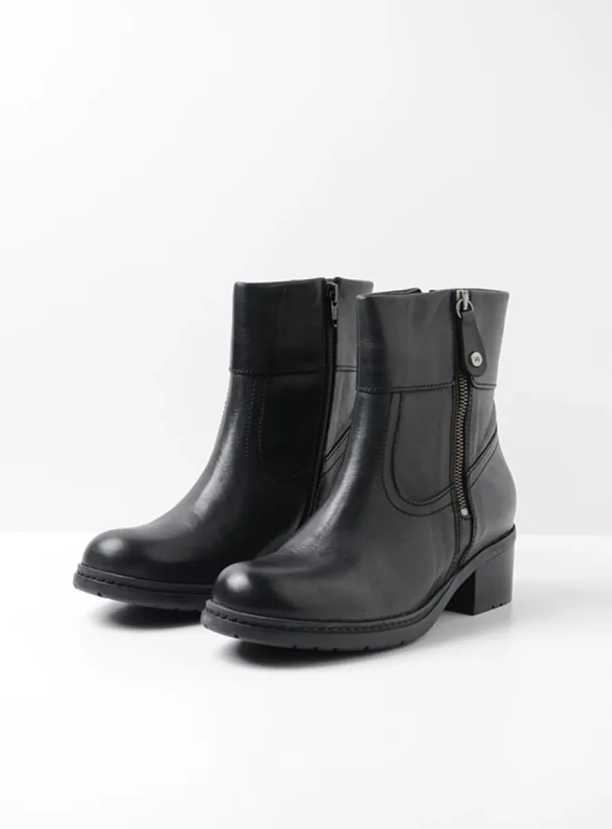 Halfhoge Laarzen|Enkellaarsjes<Wolky Fairview XW – zwart leer zwartleer