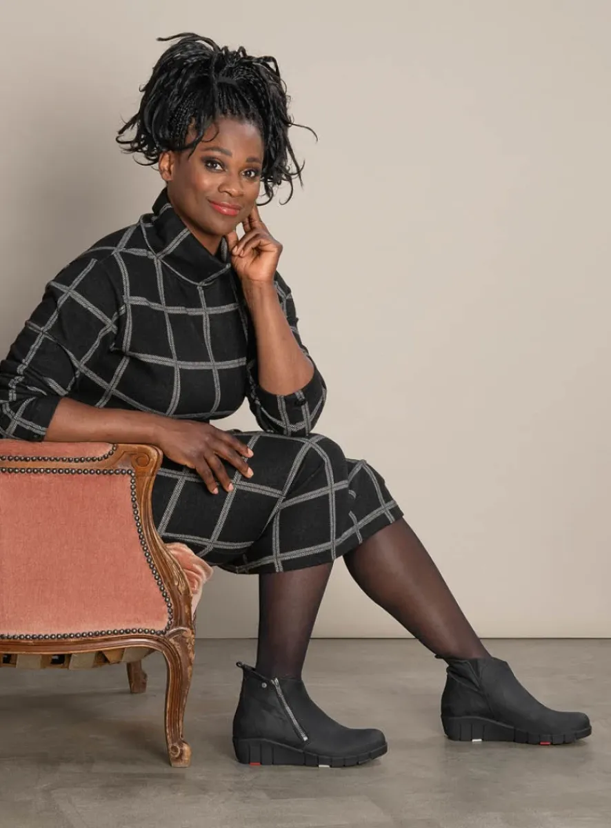 Wolky’s Phoenix HV is speciaal gemaakt voor wie kampt met hallux valgus. Er is namelijk extra ruimte toegevoegd bij de aanzet van de grote teen; zo krijg je geen last van knellingen. De laars is superzacht doordat ‘ie is gemaakt van licht gevet nubuck. De functionele rits aan de buitenzijde zorgt ervoor dat je de schoenen binnen no time aan (en uit!) hebt. De dikke zool stabiliseert de achterkant van de voet, terwijl de voorkant fliexivel blijft, zo wikkel je makkelijk af tijdens het lopen. Door de comfortabele sleehak lijk je optisch langer en slanker. Comfort én stijl in een!