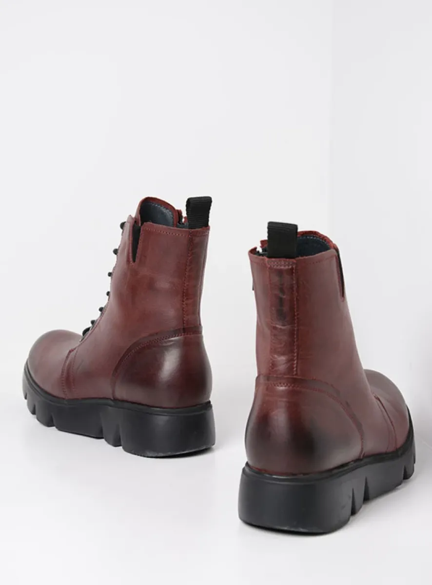Hoge Veterschoenen|Veterlaarzen<Wolky Hope XW – bordeauxrood leer bordeauxroodleer