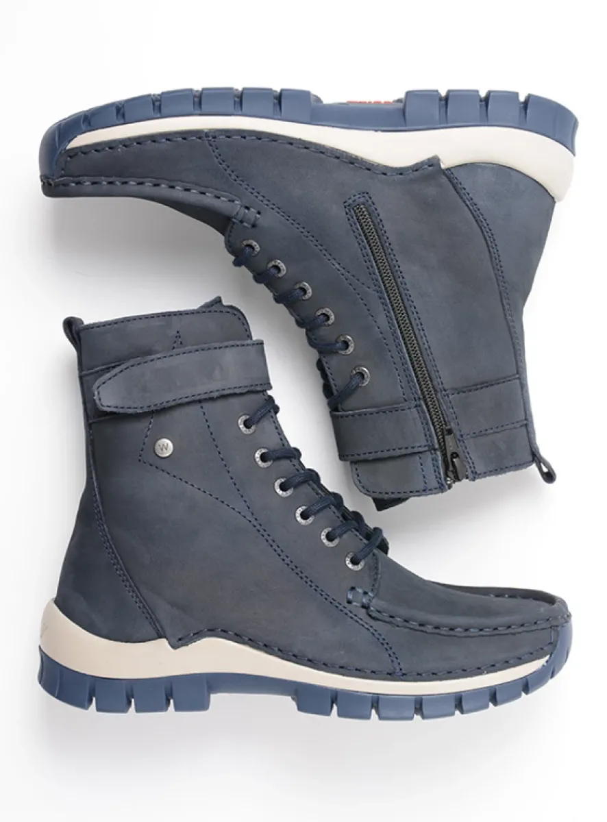 Hoge Veterschoenen|Veterlaarzen<Wolky Reach – blauw nubuck blauwnubuck