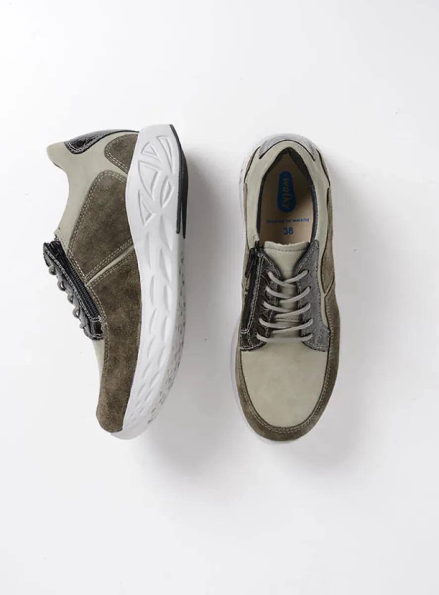 Lage Veterschoenen|Wandelschoenen<Wolky Bounce – grijsgroen combi leer grijsgroencombileer