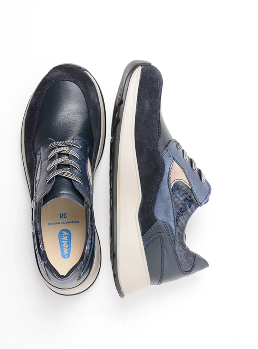 Lage Veterschoenen|Wandelschoenen<Wolky Sappho – blauw combi leer blauwcombileer