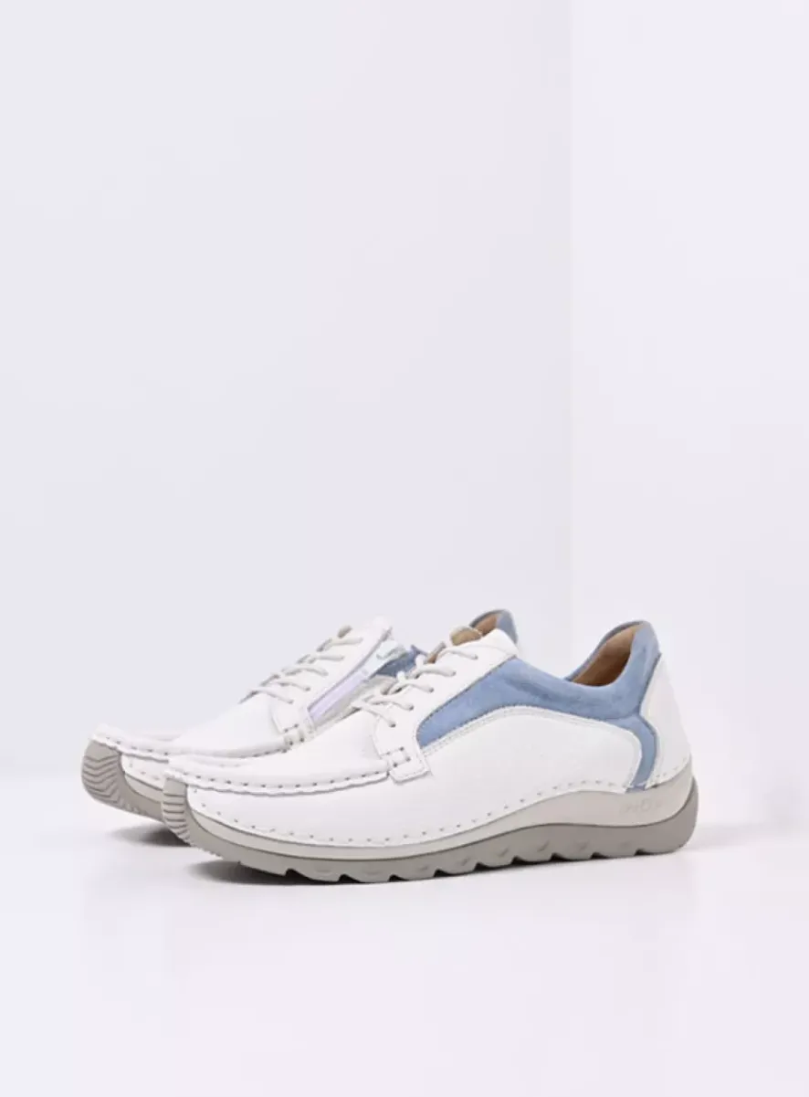 Lage Veterschoenen<Wolky Japura – wit-lichtblauw leer wit-lichtblauwleer