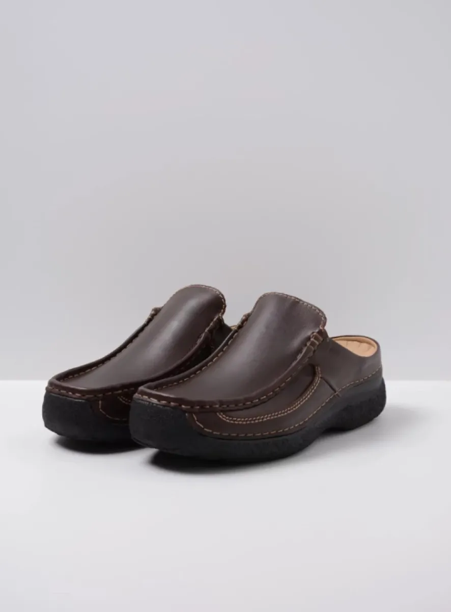 Slippers Heren|Comfortschoenen Heren<Wolky Roll Slide men – bruin leer bruinleer