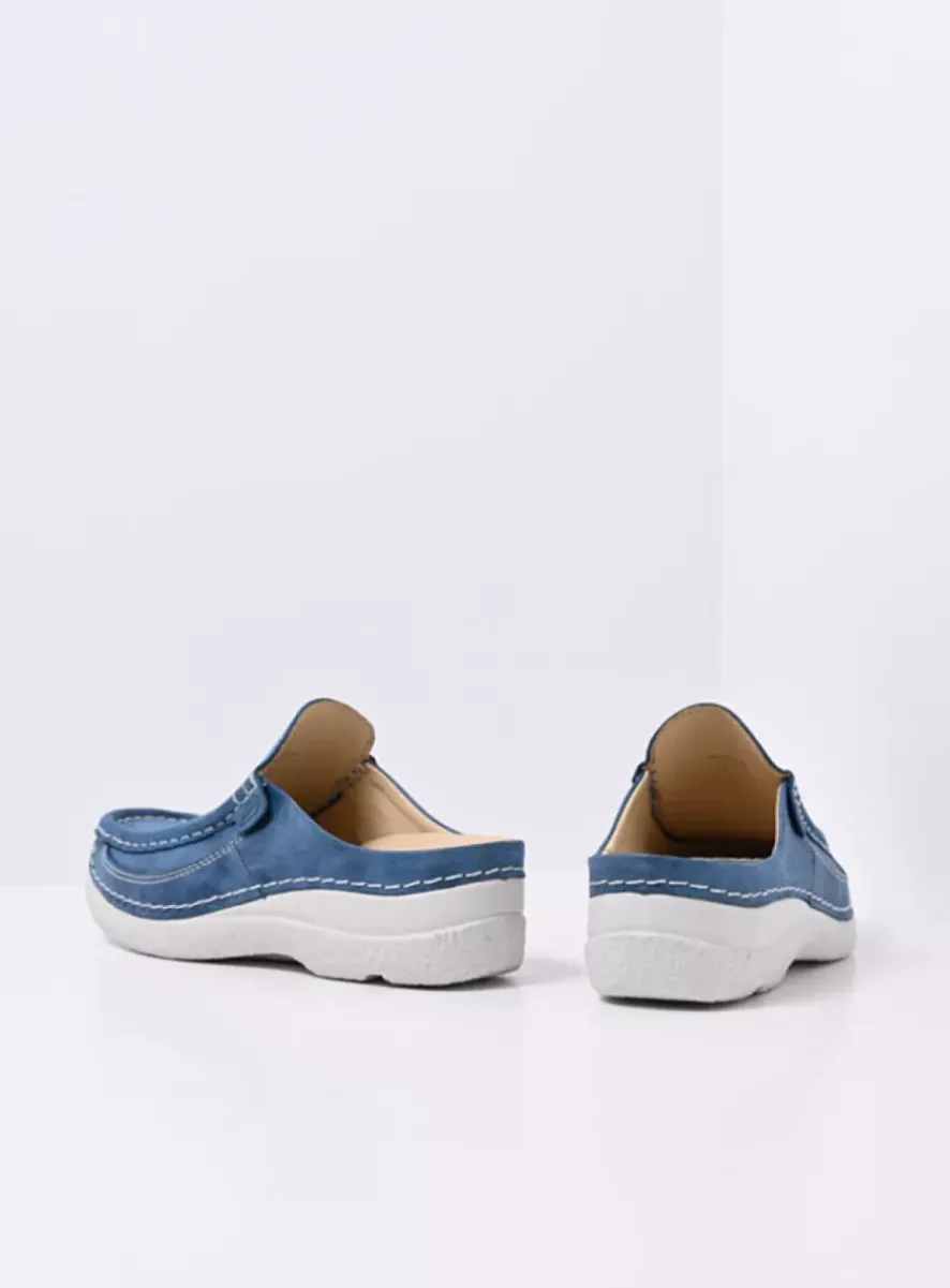 Deze muil uit de Roll Moc-lijn is bij veel Wolky-draagsters favoriet en dat is niet zo gek want je schiet er makkelijk even in. We horen dan ook dat veel dames ’m bij de deur hebben staan, om even de moestuin in te lopen of even wat in de container te gooien. Maar gebruik de Roll Slide ook zeker voor een wandeling. Door de oplopende neus die zo herkenbaar is bij alle Roll Moc-modellen rolt de voet als vanzelf af. De mocassin-maakwijze (handwerk!) zorgt ervoor dat de schoen van binnen lekker zacht aanvoelt. De naden liggen door deze maakwijze namelijk aan de buitenkant en daardoor heb je geen vervelende randen en stiksels aan de binnenkant.Let op: doordat de naden zichtbaar bovenop het voorblad liggen is het verstandig om bij nat weer de schoenen goed in te spuiten met een waterafstotende spray.