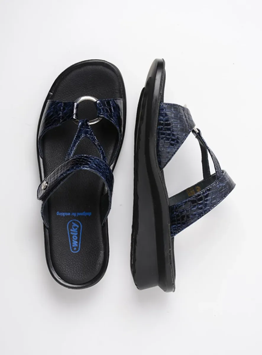 Slippers<Wolky Isa – blauw crocolook lakleer blauwcrocolooklakleer