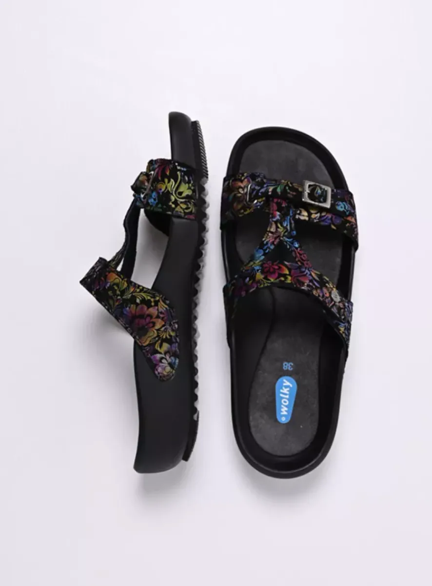 Slippers<Wolky O'Connor – zwart/multi flower nubuck
