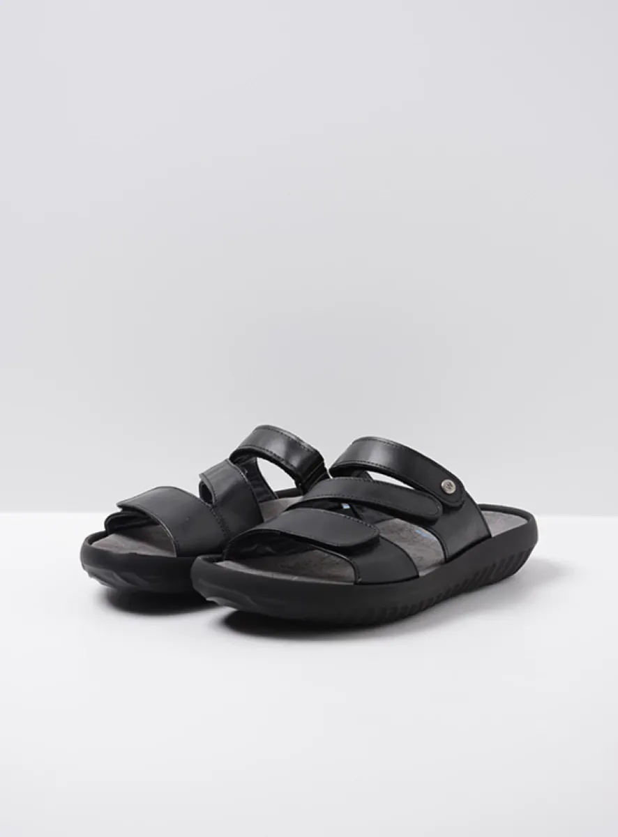 Slippers<Wolky Sense – zwart leer zwartleer
