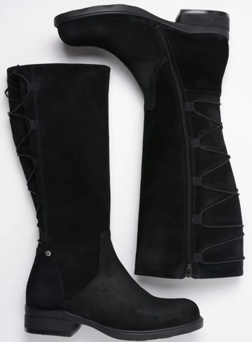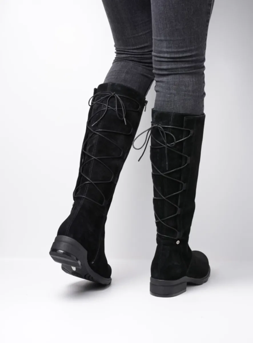 Veterlaarzen|Lange Laarzen<Wolky Longview – zwart suede zwartsuede