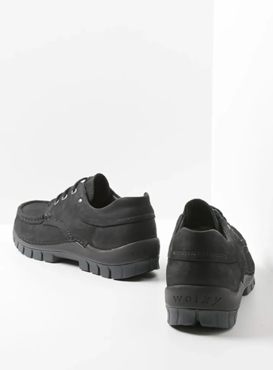 Veterschoenen Heren|Comfortschoenen Heren<Wolky Fly men – zwart nubuck zwartnubuck