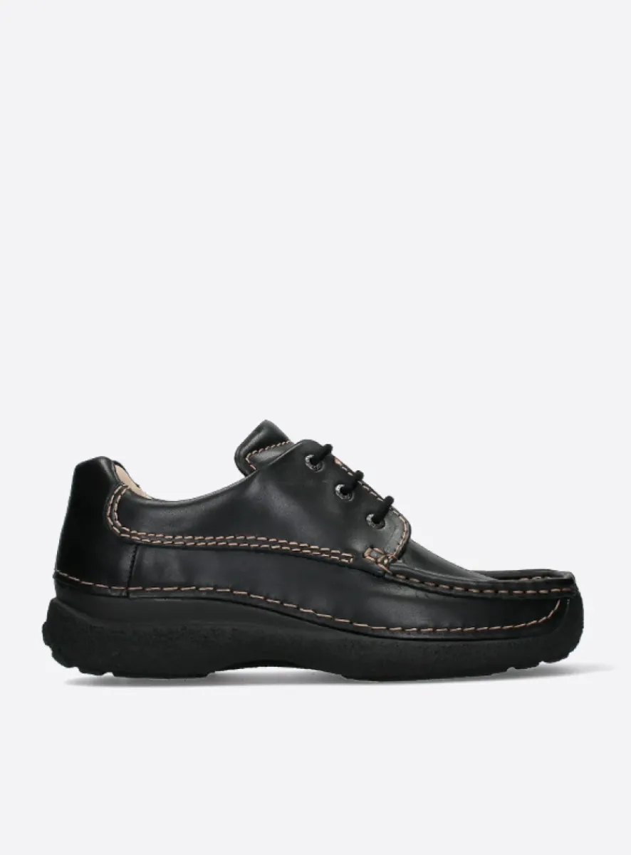 Veterschoenen Heren|Comfortschoenen Heren<Wolky Roll Shoe Men – zwart leer zwartleer