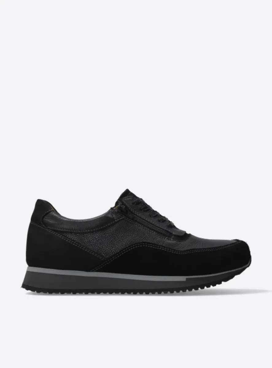 Veterschoenen Heren|Sneakers Heren<Wolky e-Runner – zwart combi leer zwartcombileer