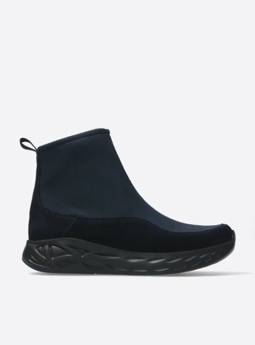 Deze ‘sokboot’ zit als gegoten en biedt je voeten ook nog eens de ondersteuning waar ze naar verlangen. De zool is licht en superdempend. Voor loopt de zool iets op. Die oplopende neus zie je veel bij Wolky en die is er niet voor niets, want hierdoor wikkel je je voeten moeiteloos af en dat maakt lopen makkelijker. Het bovenwerk is voor het grootste deel van stretchmateriaal, dat mooi aansluit om de voet en de enkel. Om de voet de perfecte steun te geven en op zijn plaats te houden bestaat de basis, de ‘kom’ waar de voet in staat, uit een stevige laag suede. Het resultaat: een heel fancy laarsje dat heerlijk zit en waar je uren op kan lopen. Ideaal te combineren met zowel broek als jurk!